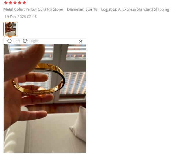 It’s prohibited to sell brands on Aliexpress, so sellers have to hide the logo on product preview and ask buyers not to mention the brand name of the real product photo in feedback. So if you are looking for a branded Cartier bracelet dupes make sure to check the review tab or contact the seller before you place an order.