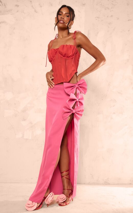 Hot Pink Woven Bow Thigh Detail Maxi Skirt – Bow Outfits