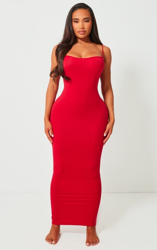 Get your glam on with this shape red stretch seamless strappy maxi dress. Made from a red stretch material with a seamless design you’re sure to have all eyes on you. Its strappy detailing will have you feeling chic. When the weekend calls so does this unreal shape maxi dress. So what are you waiting for? Shop the look and opt for your go-to heels and accessories. It’s a yes from us.